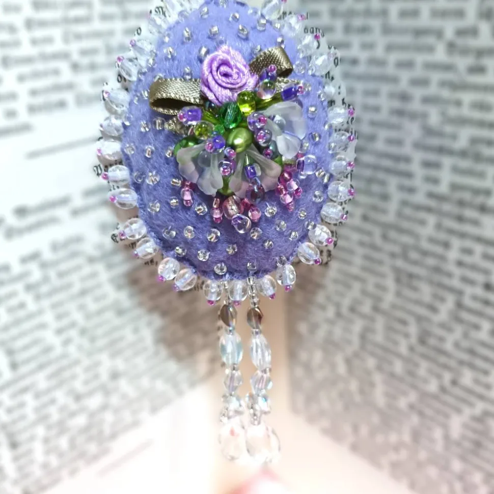 Das perlenbestickte Osterei ist innen gepolstert, von beiden Seiten aufwändig bestickt und funkelt wertig im Licht. Das kommt besonders schön zur Geltung beim Einsatz vom Osterei als als Deko im Osterstrauß oder Taufgesteck. Auch toll als Tischdeko zur Konfirmation. Im Christentum ist das Ei das Symbol für die Auferstehung Jesu. Das Ei ist ein Symbol für Leben, Wiedergeburt und den Ursprung der Welt. Opulentes Osterei mit einer Höhe von etwa 7 Zentimeter und einer Breite von 5 cm.und durch die Füllung und die Perlenstickerei ist dieses Perlenei etwa 2 cm stark. Komplette Länge mit Kettchen 22 cm. Diese Variation des Prunkei sieht auch toll aus als Schlüsseldeko zum shabby chic Stil oder Landhaus Ambiente am vintage Schrank oder Sekretär.