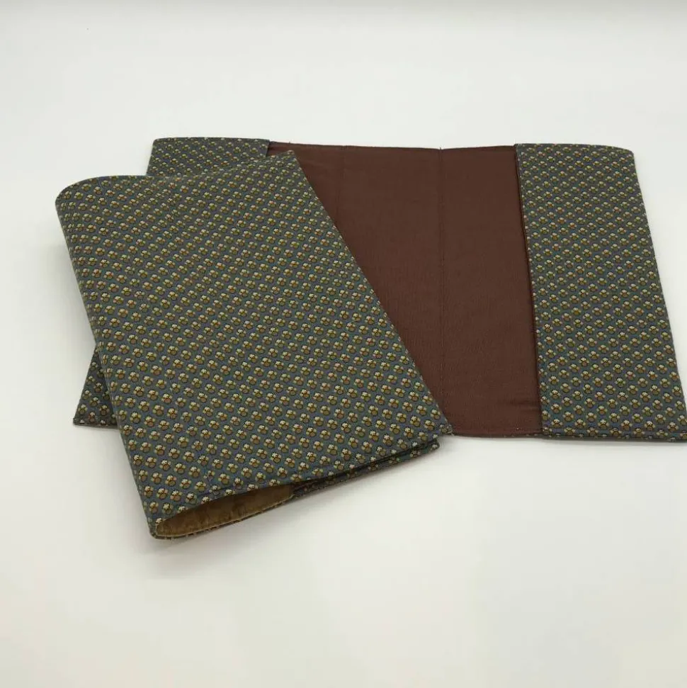 Hier ist der Einband in blau und beige, der Innenstoff ist dunkelbraun oder ocker. Bitte bei der Bestellung angeben, welches Innenfutter gewünscht ist.