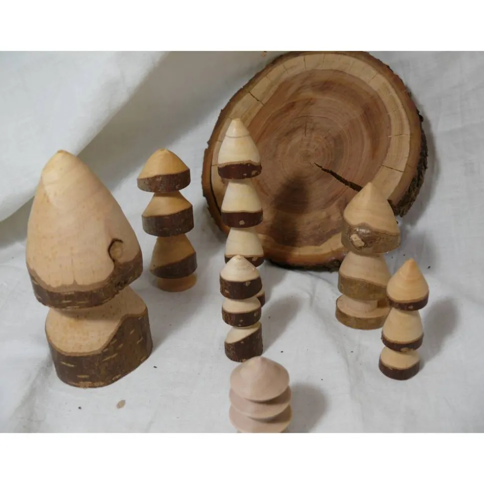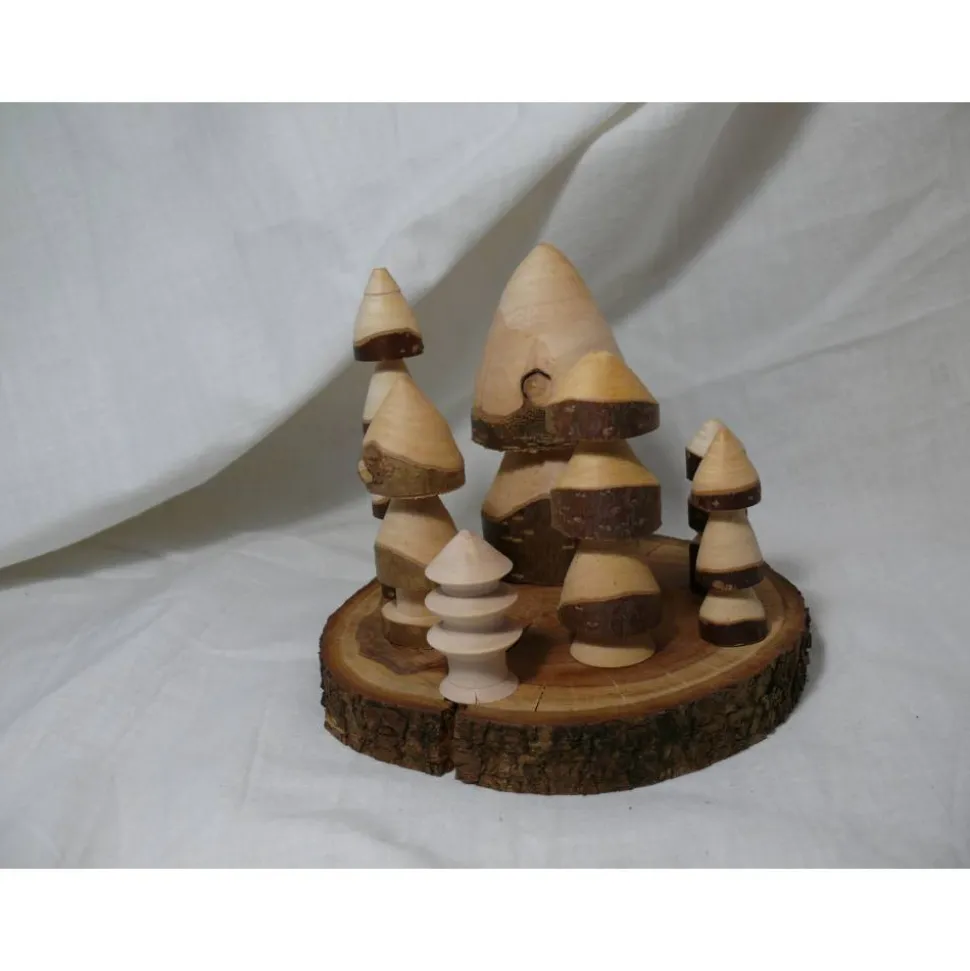 Bestehend aus 7 Bäumchen und einer Scheibe aus Zwetschgenholz.