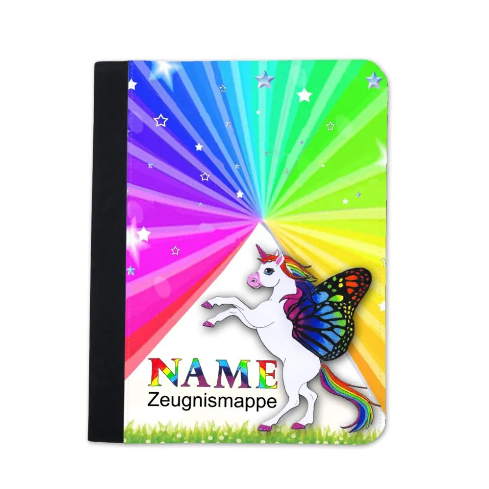 Einhorn Zeugnismappe personalisiert | Zeugnismappe Mädchen | Zeugnismappe mit Namen | Urkundenmappe Regenbogen