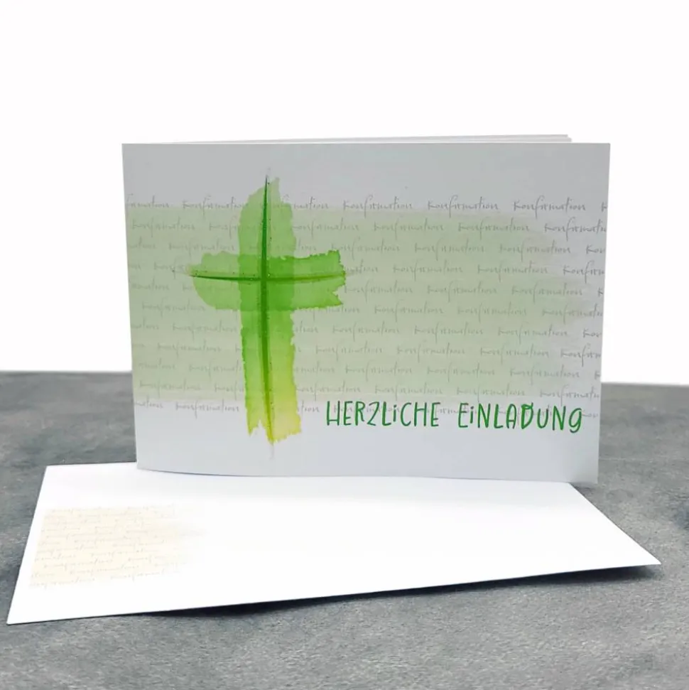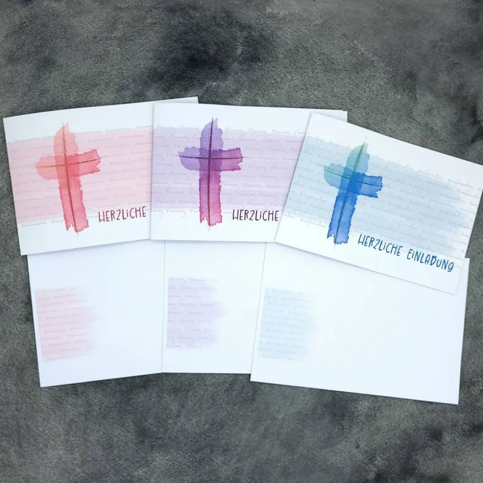 Entdecke die hochwertige Einladungskarte zur Konfirmation, Kommunion oder Firmung im modernen Design „Aquarell-Kreuz“!