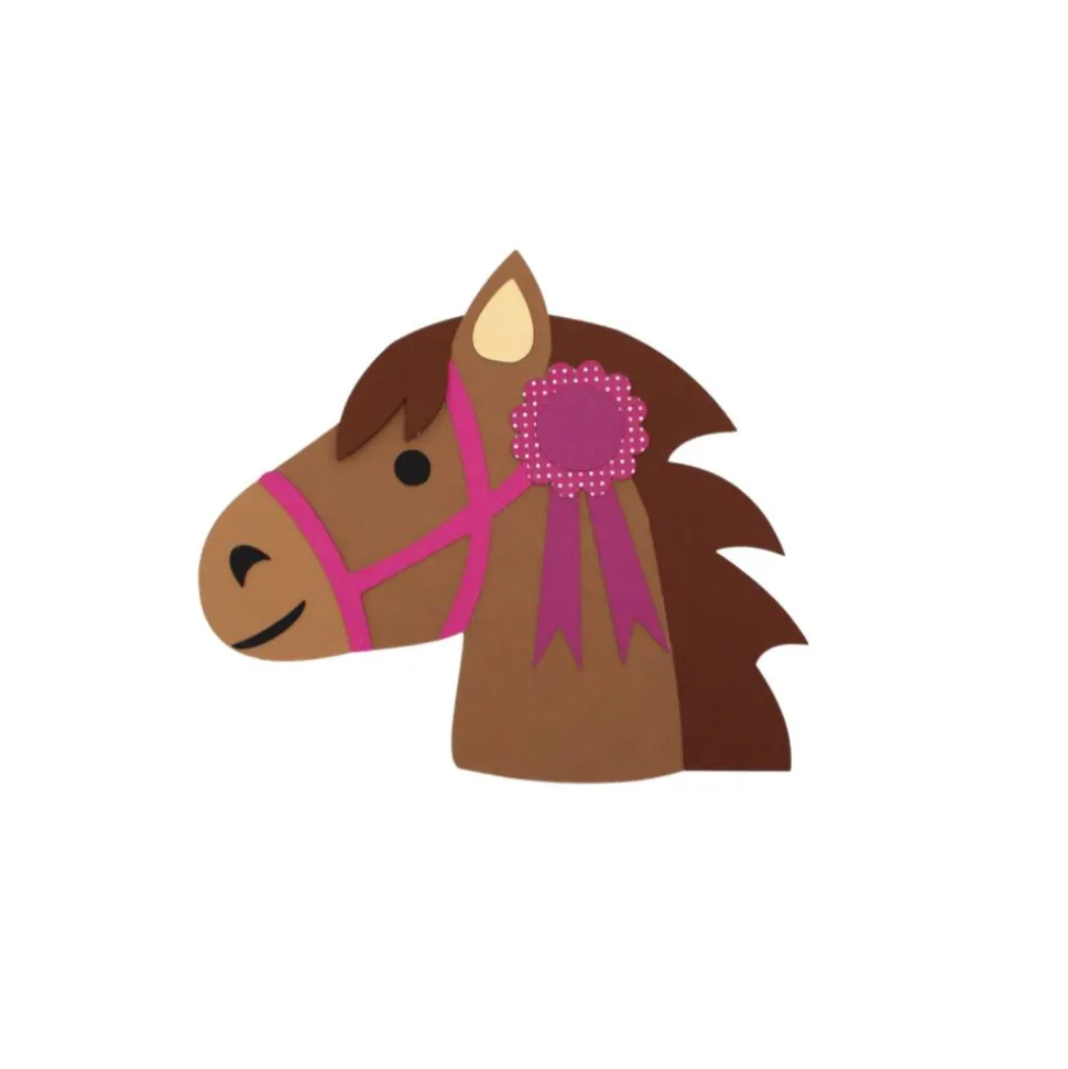 Inhalt der Bastelbox: Einladungskarte Pferd aus Tonkarton, Stanzteile aus Tonkarton, Bastelanleitung