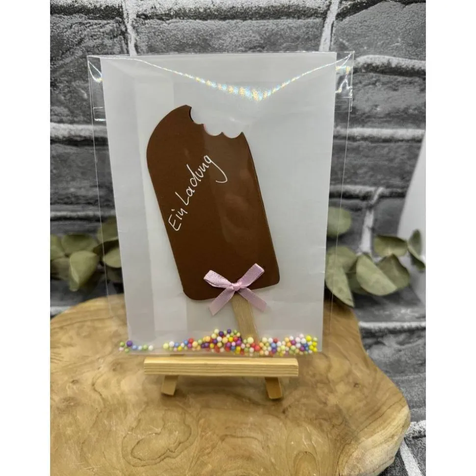Handgefertigte Einladungskarte zum Kindergeburtstag in Eis form.