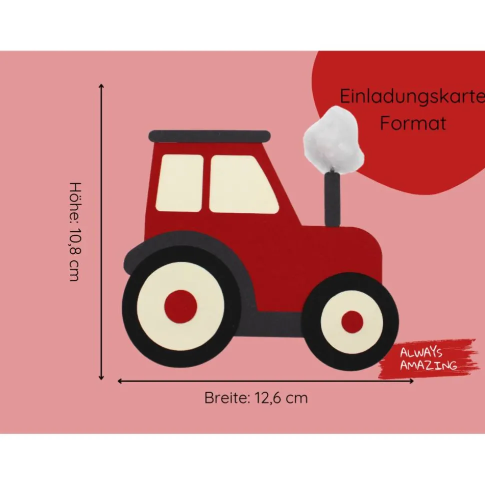 Ideal für Kindergeburtstage und thematische Feiern im Traktor-Stil. Lass deiner Kreativität freien Lauf und gestalte unvergessliche Momente mit unserem Traktor Einladungskarten Bastelset!