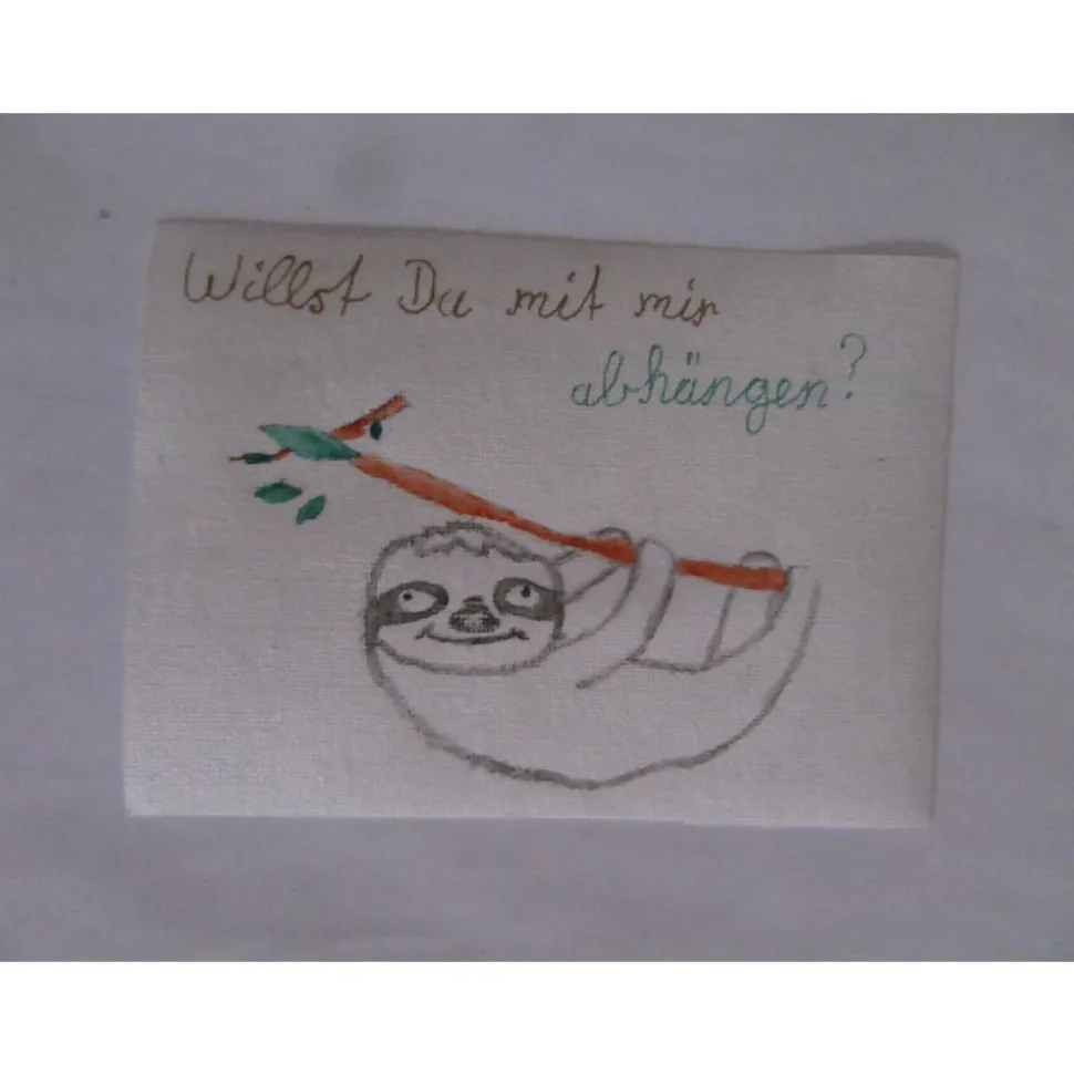 Das Motiv wurde mit Aquarell auf Leinwandpapier gemalt und mit Lack versiegelt.