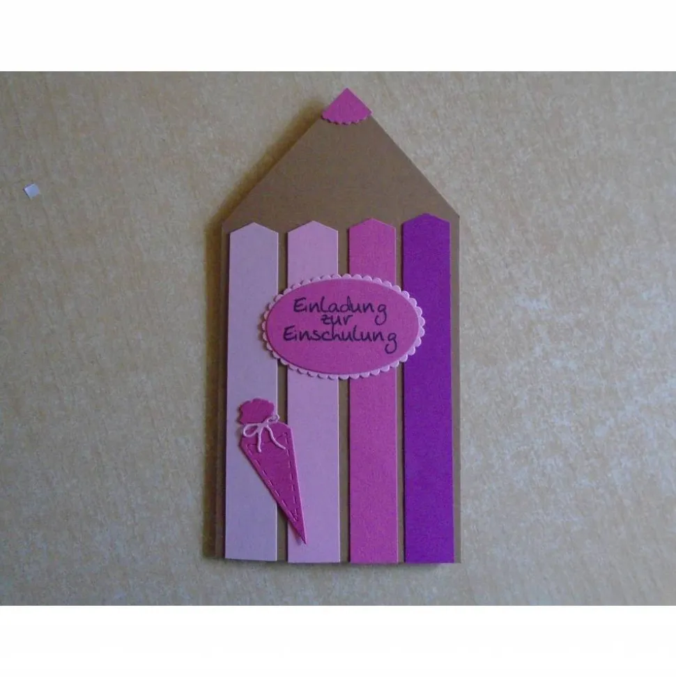 diese Karte Einschulung/Schulanfang habe ich als Einladungskarte in der Form eines Stift`s gefertigt..