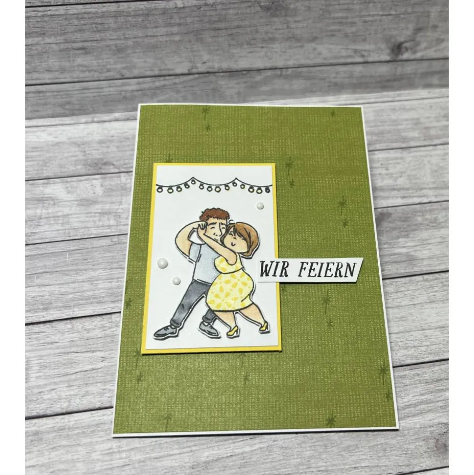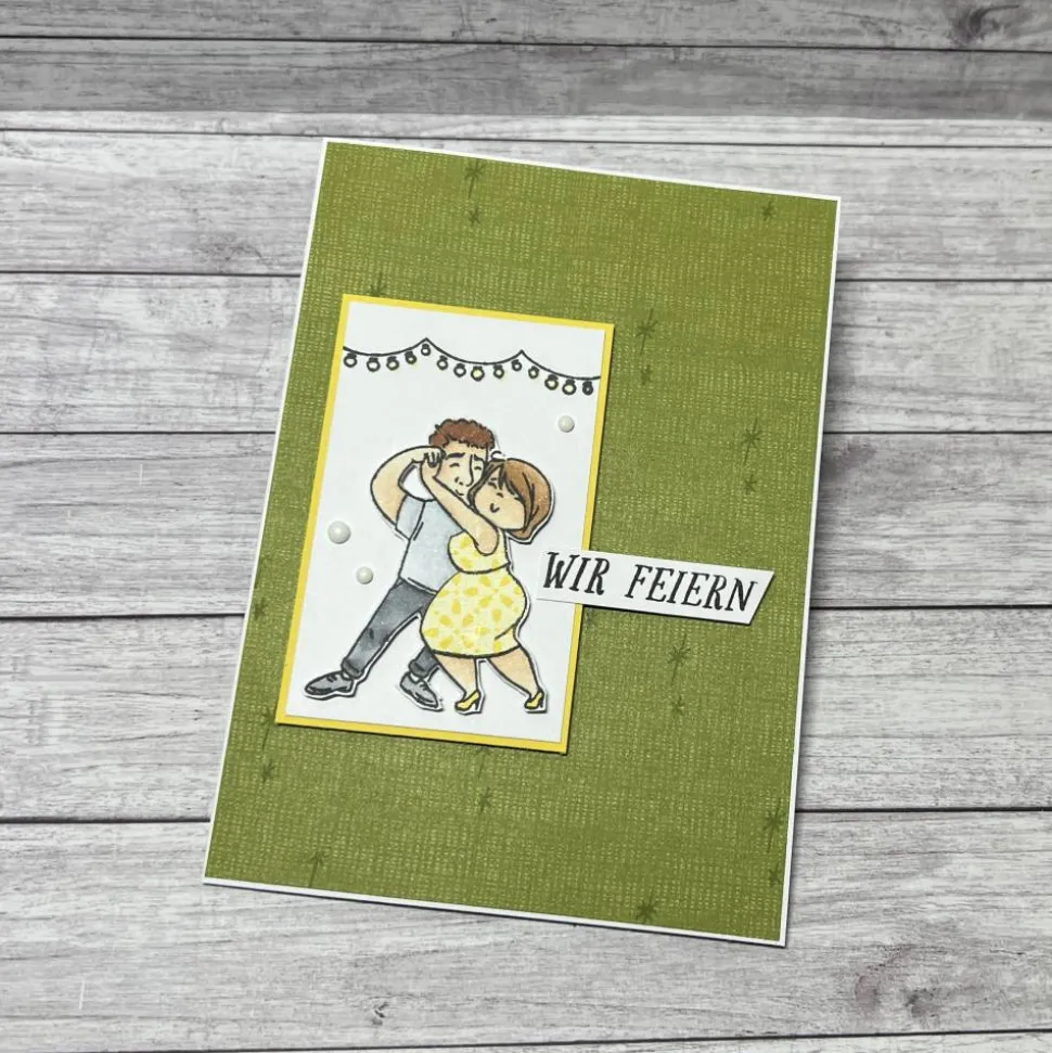 Dann erhältst du hier Einladungskarten, die mit viel Liebe zum Detail, von mir handgefertigt werden. Durch das Motiv und den Spruch „Wir feiern“, sind die Karten für die verschiedensten Anlässe geeignet.