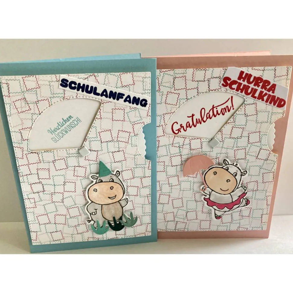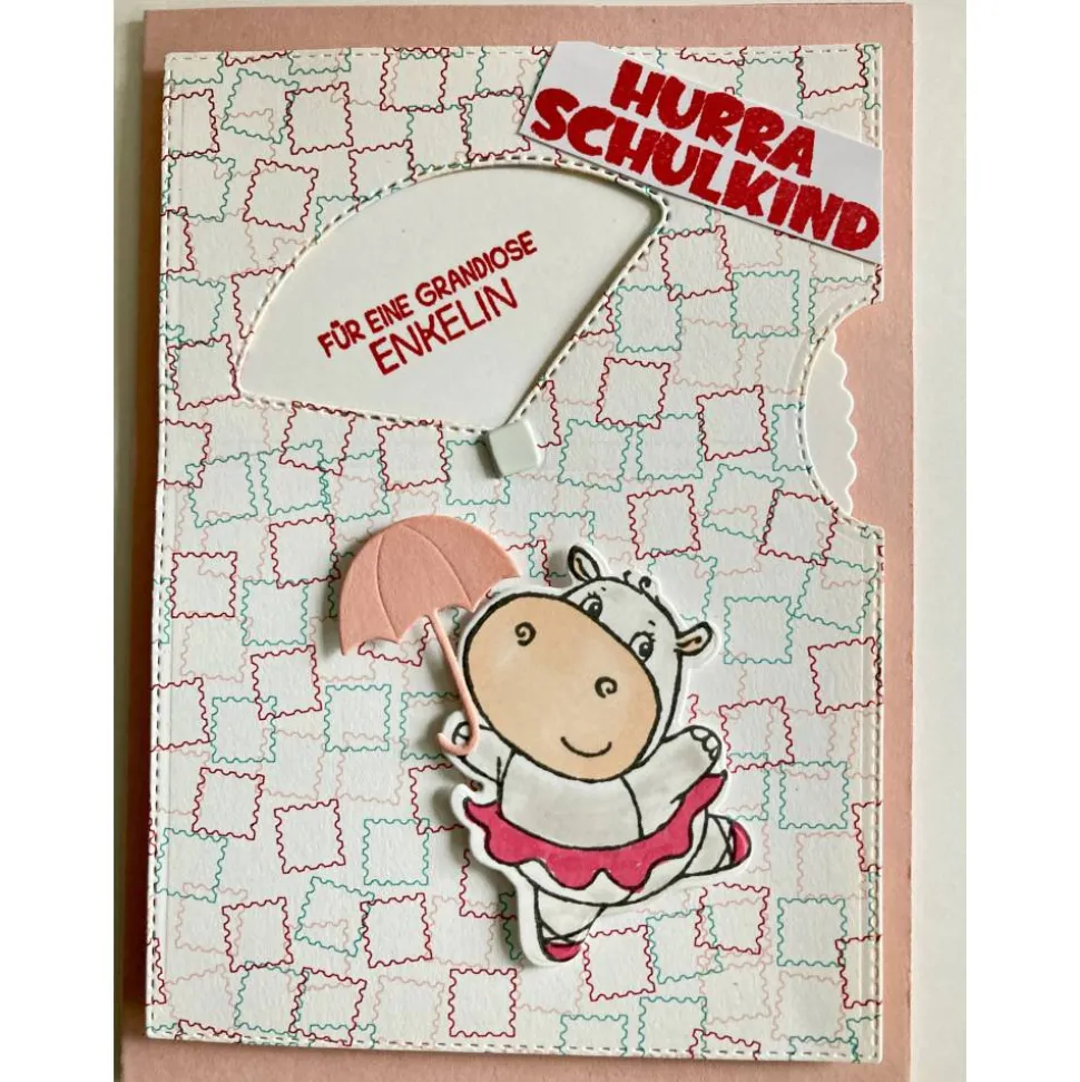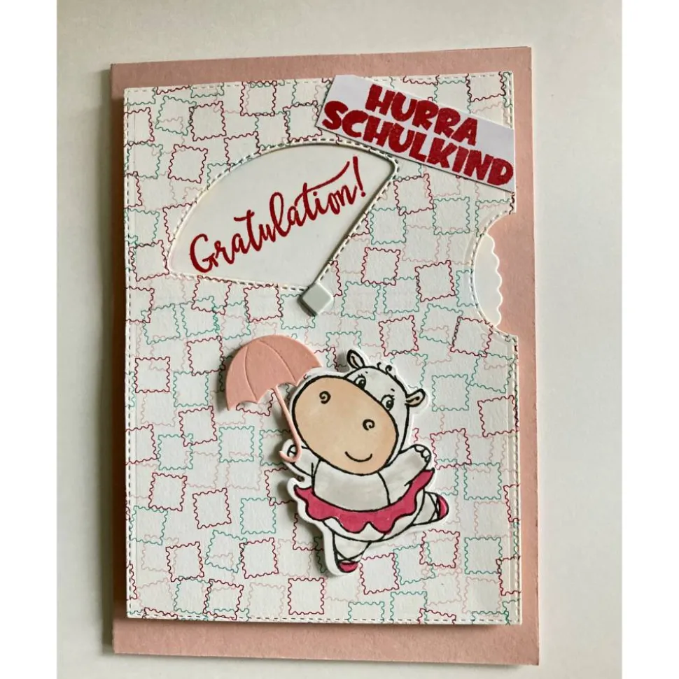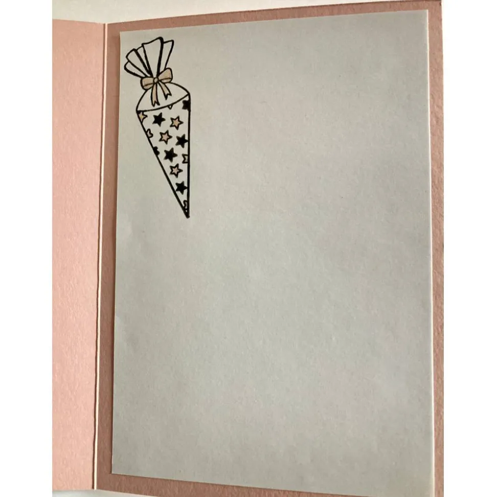 Auf dem Inlett der Karte ist eine Schultüte aufgestempelt. Es ist viel Platz für persönliche Glückwünsche an das neue Schulkind.