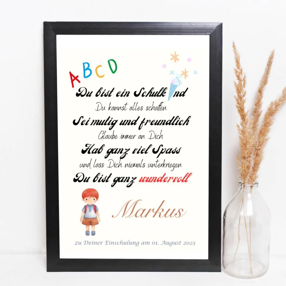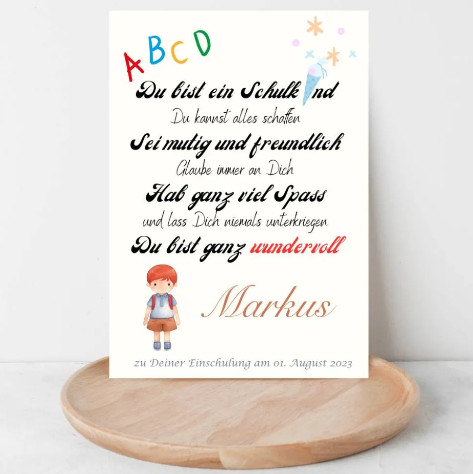 Personalisiert mit Wunschnamen des Schulkindes als Einschulungsgeschenk.