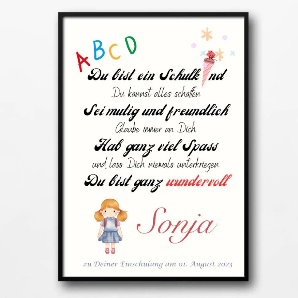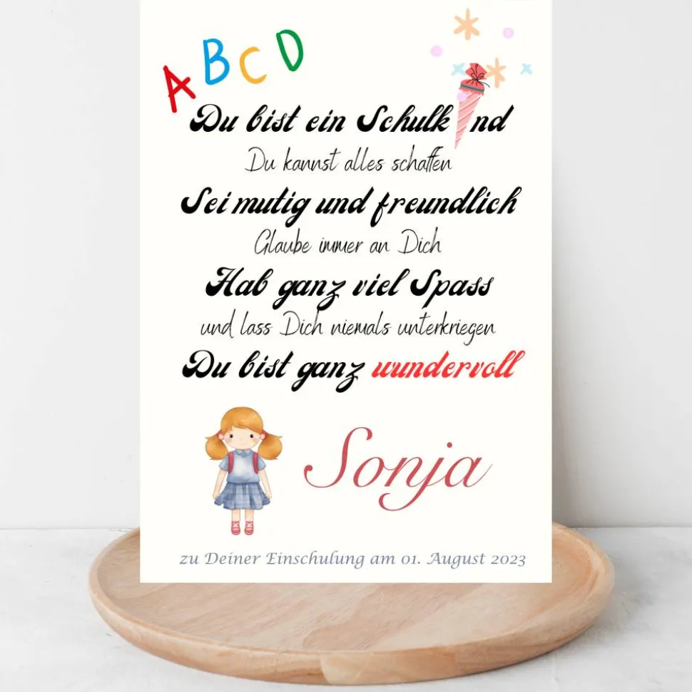 Personalisiert mit Wunschnamen des Schulkindes als Einschulungsgeschenk.