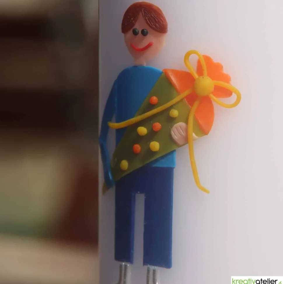 Jedes Ornament auf dieser Kerze wird einzeln von Hand aus verschiedenen Wachsplatten ausgeschnitten, bevor es sorgfältig auf der Kerze zu einem kunstvollen Gesamtbild arrangiert wird. Diese Kerze zur Einschulung ist ein Zeichen echter Handarbeit und damit ein besonderes Geschenk zum Schulbeginn.