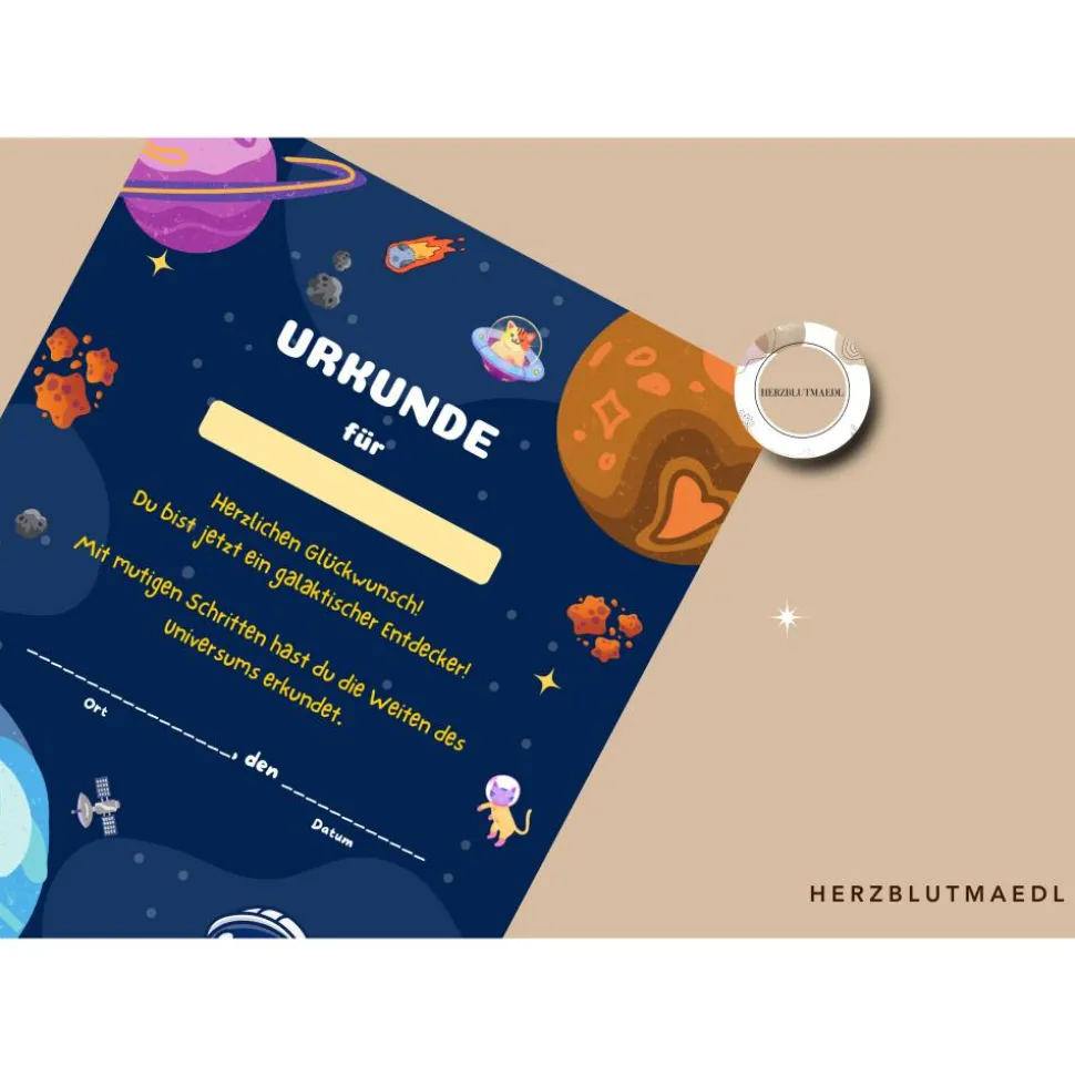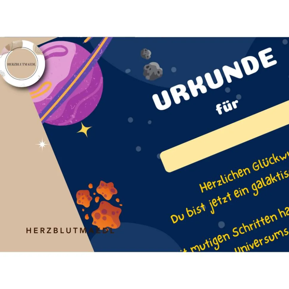 Für eine persönliche Note bieten wir dir die Möglichkeit, deine eigene Botschaft oder Widmung auf der Urkunde zu verewigen. Gegen einen geringen Aufpreis von nur 5 Euro kannst du deinen individuellen Text hinzufügen lassen, sei es eine herzliche Glückwunschnachricht, ein inspirierendes Zitat oder ein spezielles Datum. Dieses Angebot ist exklusiv in unserem Shop verfügbar, um sicherzustellen, dass dein Mitgebsel noch persönlicher wird. Lege einfach meinen Artikel „Urkunde mit Wunschtext“ zusätzlich in deinen Warenkorb und hinterlasse uns deine gewünschte Nachricht. Wir kümmern uns dann um den Rest, damit der Kindergeburtstag für immer unvergesslich bleibt.