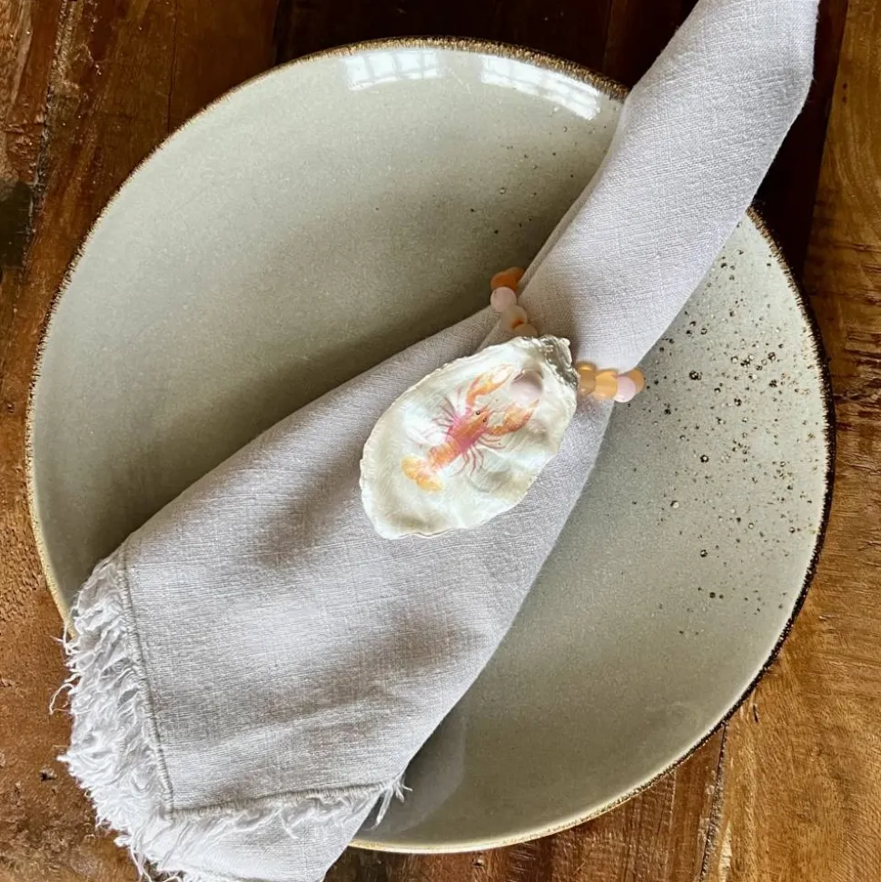 Set Serviettenhalter aus Austern und Carneol und Kirschbluetenjaspis – für einen gedeckten Tisch, der unvergesslich bleibt!