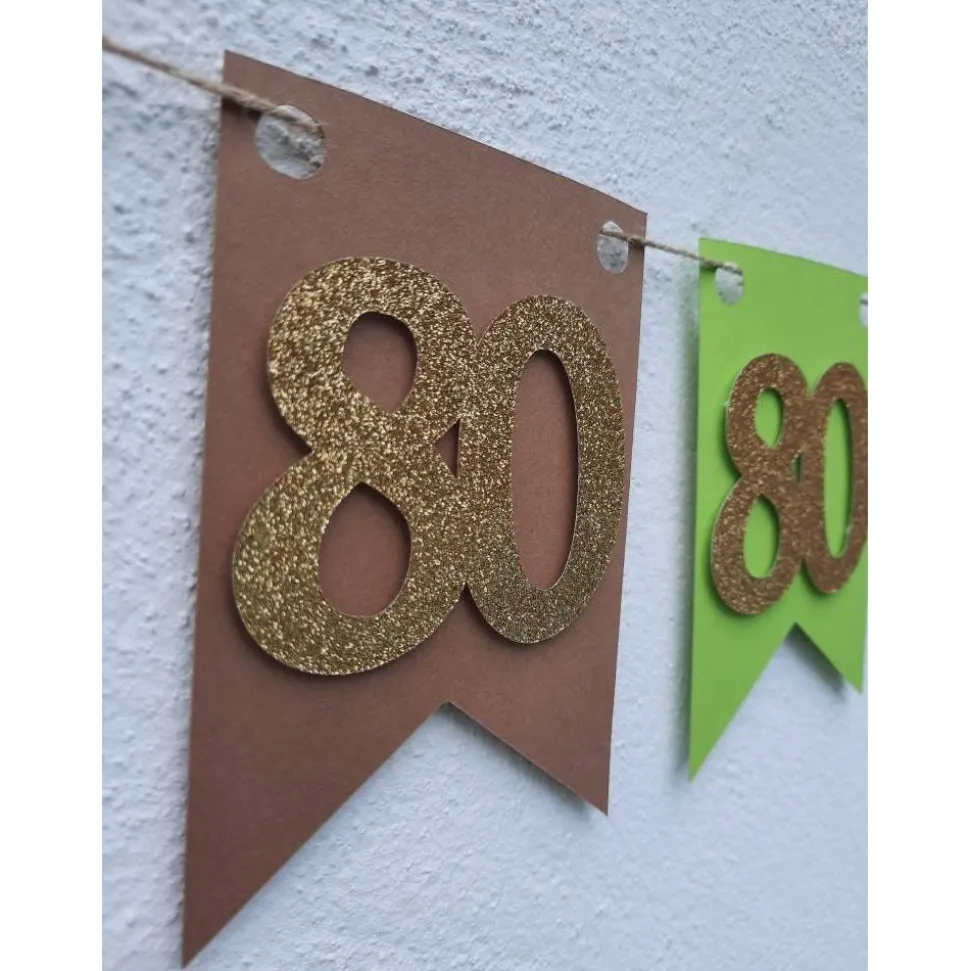 Unsere neue Farbkombination in Beige, Hellgrün und Grau mit goldenen Zahlen bringt eine erfrischende Dekoration für die große Feier.