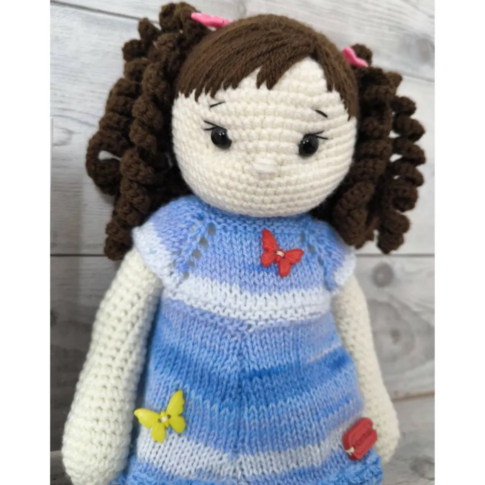 Lerne Eliana kennen – eine handgehäkelte Puppe mit liebevollem Charakter und einem Hauch Magie. Mit ihren 40 cm Größe ist sie der perfekte Begleiter zum Kuscheln, Spielen und Träumen.
