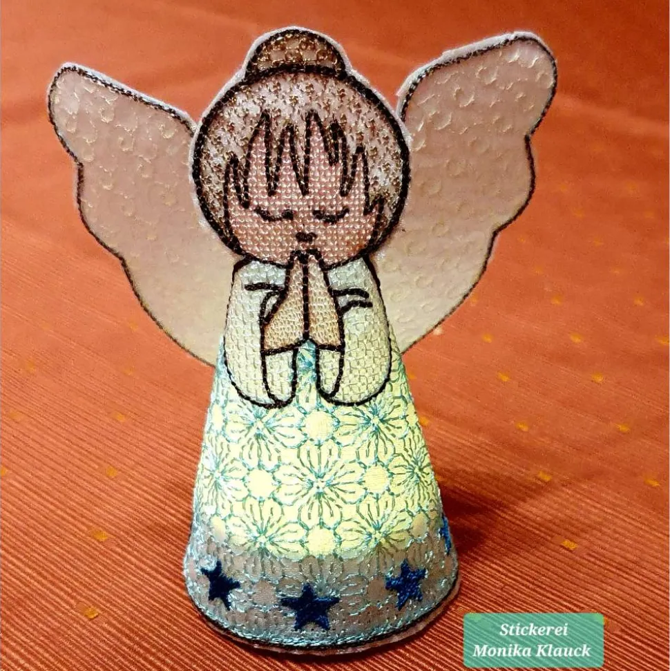 Mal kann den Engel mit einem LED-Teelicht ganz toll belechten. Bitte niemals echte Teelichter verwenden.