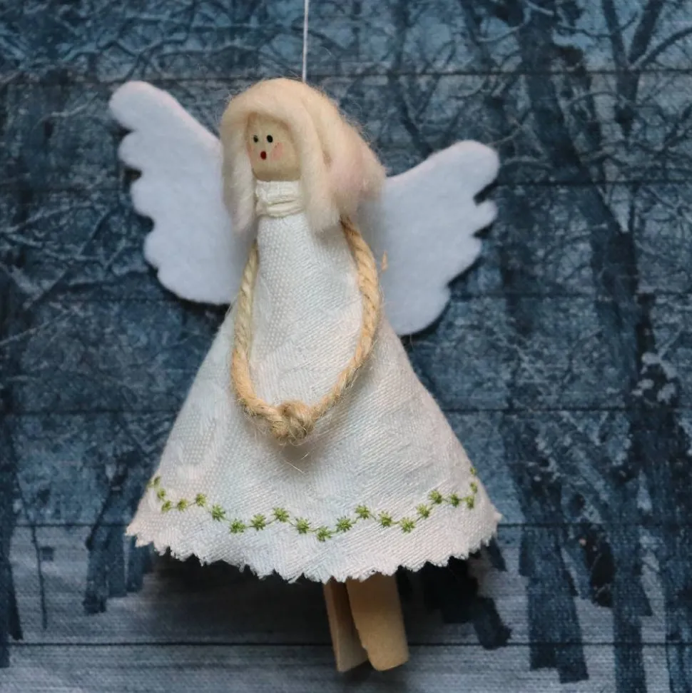 Das Engelchen ist ca. 11cm groß und hat eine Flügelspannweite von ca. 9cm.