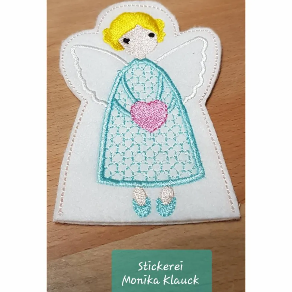 Das Stickmotiv ist auf dünnen, weißen Filz gestickt.