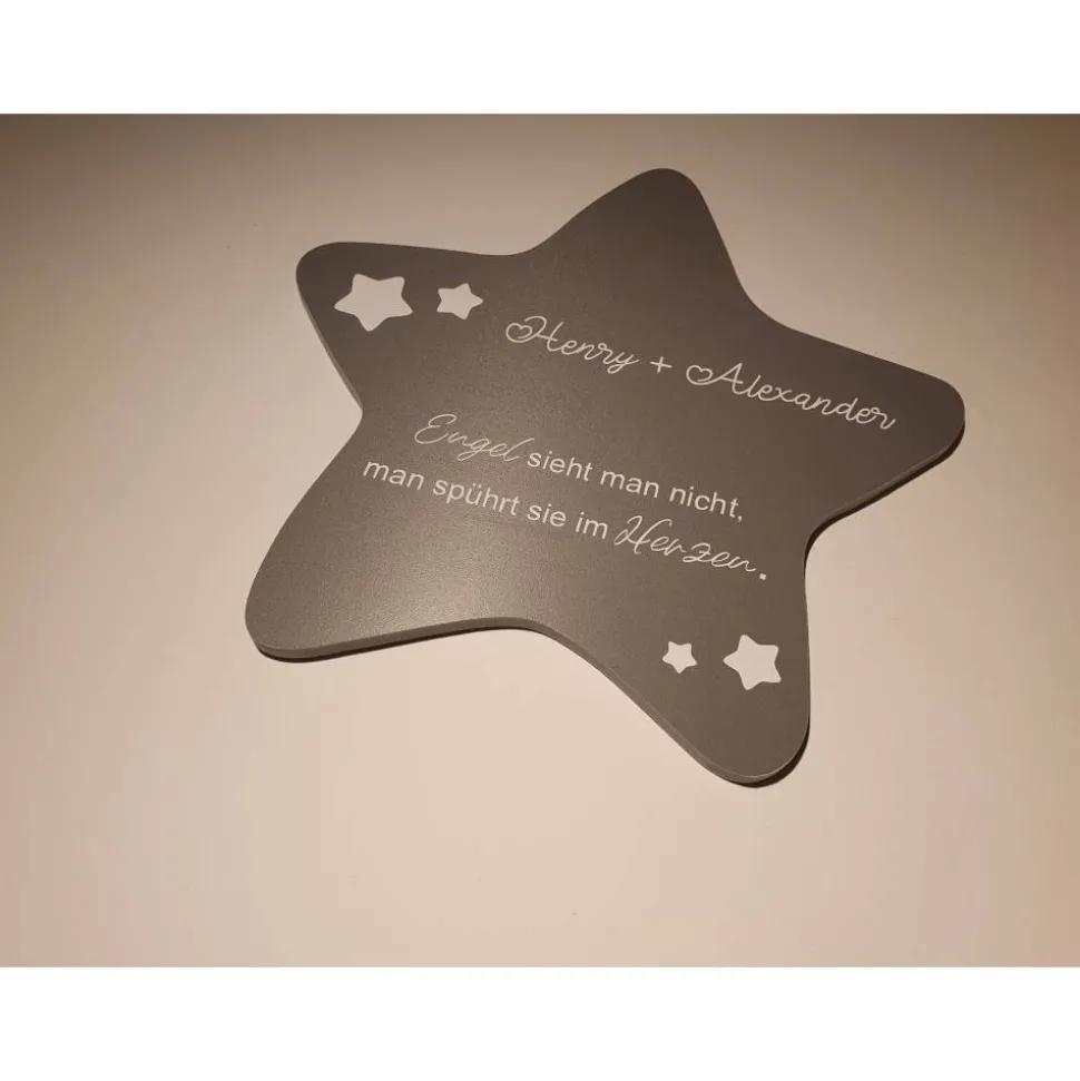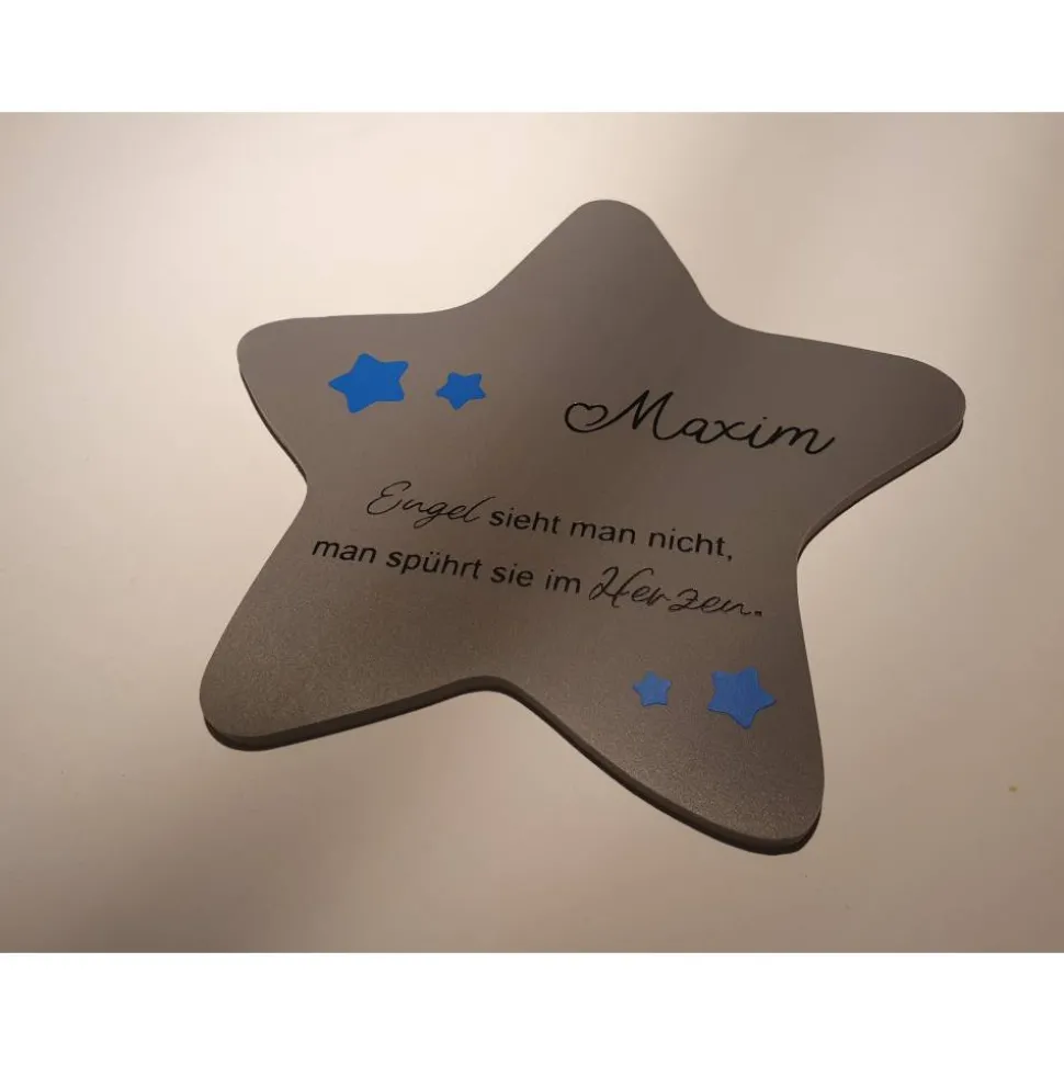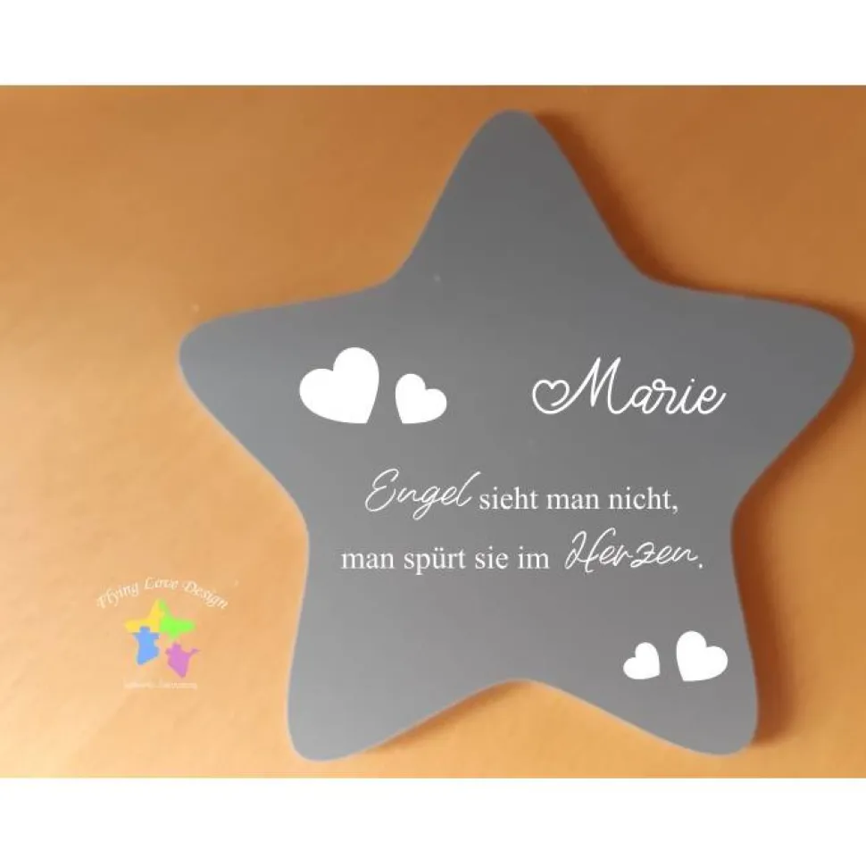 Dein Stern wird von uns aus einem wetterfestem Material (ähnlich Hartplastik) in der Größe ca. 17 x 17 cm gefertigt.