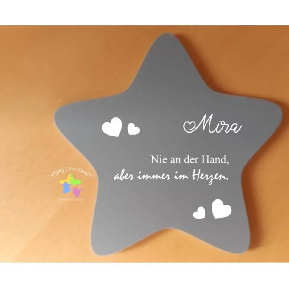 Dein Stern wird von uns aus einem wetterfestem Material (ähnlich Hartplastik) in der Größe ca. 17 x 17 cm gefertigt.
