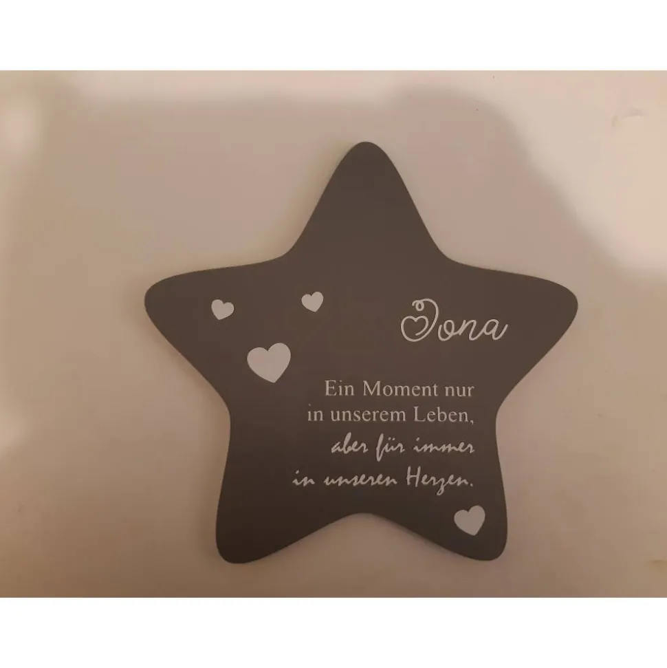 Dein Stern wird von uns aus einem wetterfestem Material (ähnlich Hartplastik) in der Größe ca. 17 x 17 cm gefertigt.