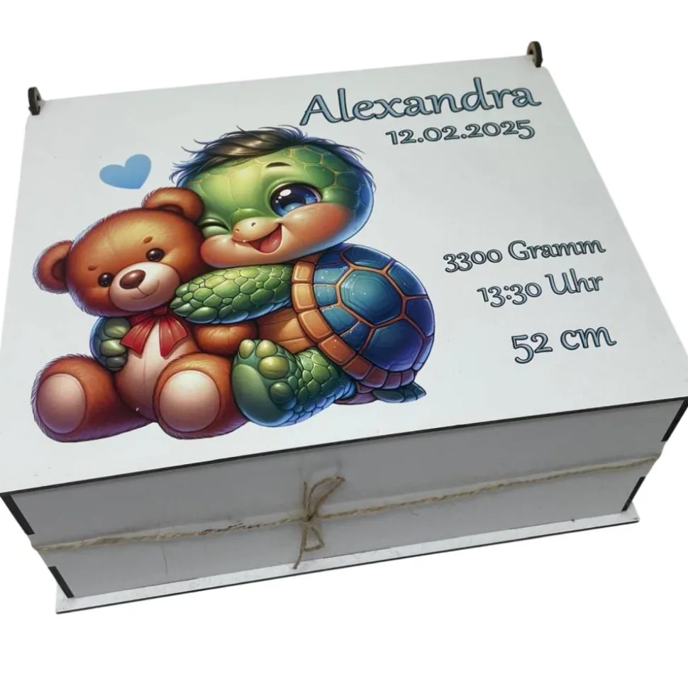 Erinnerungsbox für Baby, Erinnerungskiste, personalisierte Erinnerungskiste, Baby Geschenk personalisiert Schildkröte