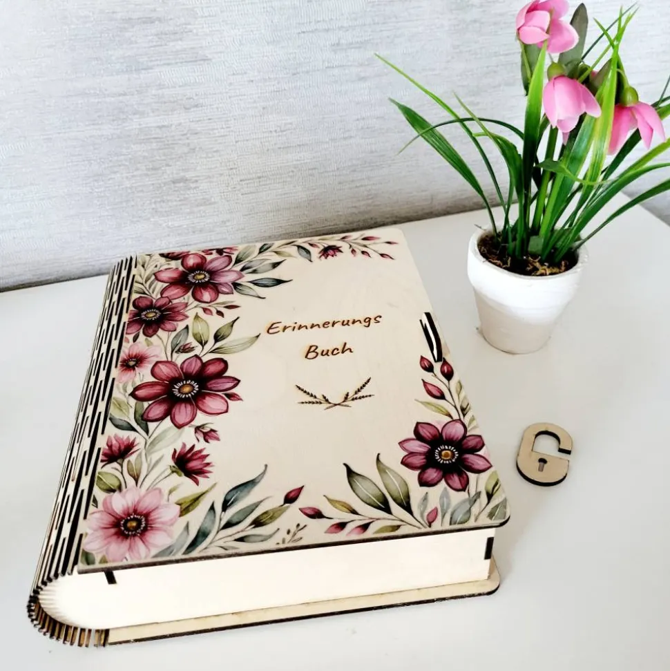 Bewahre deine schönsten Erinnerungen mit dem hochwertigen Erinnerungsbuch „graviert und bedruckt“ aus edlem Birkensperrholz. Dieses einzigartige Buch eignet sich perfekt, um besondere Momente und wertvolle Erlebnisse stilvoll festzuhalten.