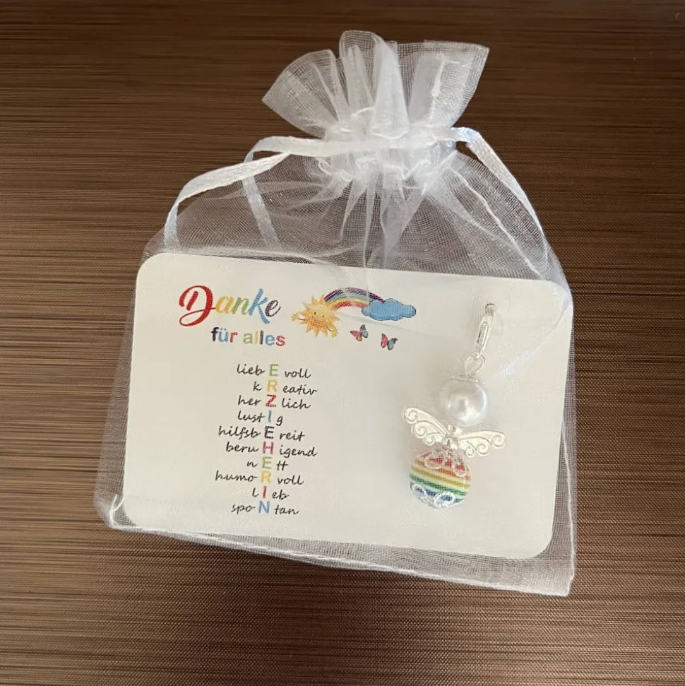 Das Ganze wird verschenkfertig in einem Organzasäckchen (siehe Bild 2) verschickt.