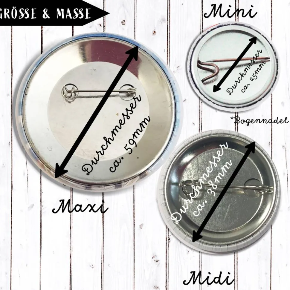 Individualisierung: Viele meiner Accessoires (Buttons, Magnete, Spiegel) fertige ich gerne nach deinen persönlichen Wünschen an.