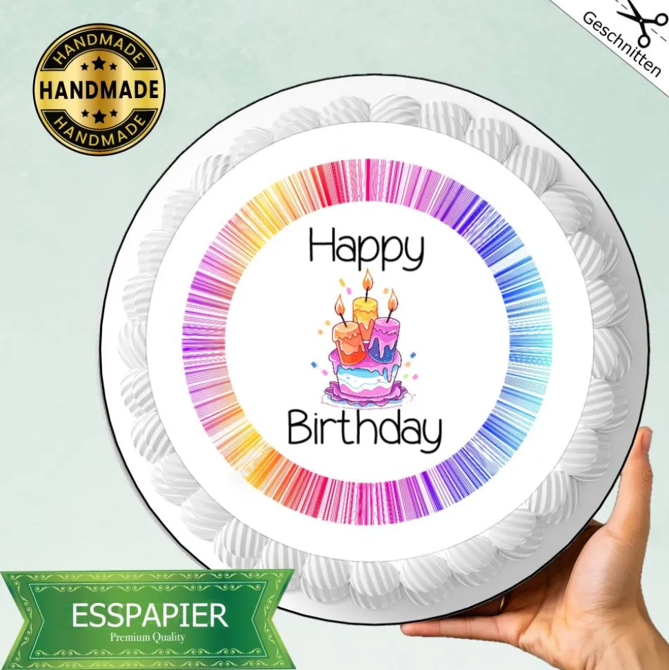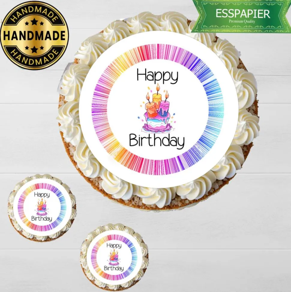 Mit dem Tortenaufleger Regenbogen Happy Birthday wird jede Geburtstagstorte zu einem bunten und lustigen Highlight. Der Rahmen in Regenbogenfarben strahlt und zaubert ein Lächeln in das Gesicht des Geburtstagskindes. Kein Thema, kein Problem – mit diesem Esspapier Aufleger gelingt jede Überraschung.