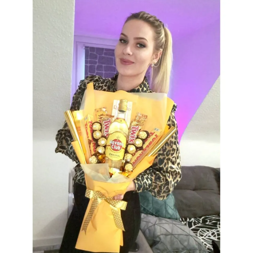 Genussstrauß mit Havana Club Rum, Toblerone, Ferrero Rocher, Twix und Mr.Tom Riegeln