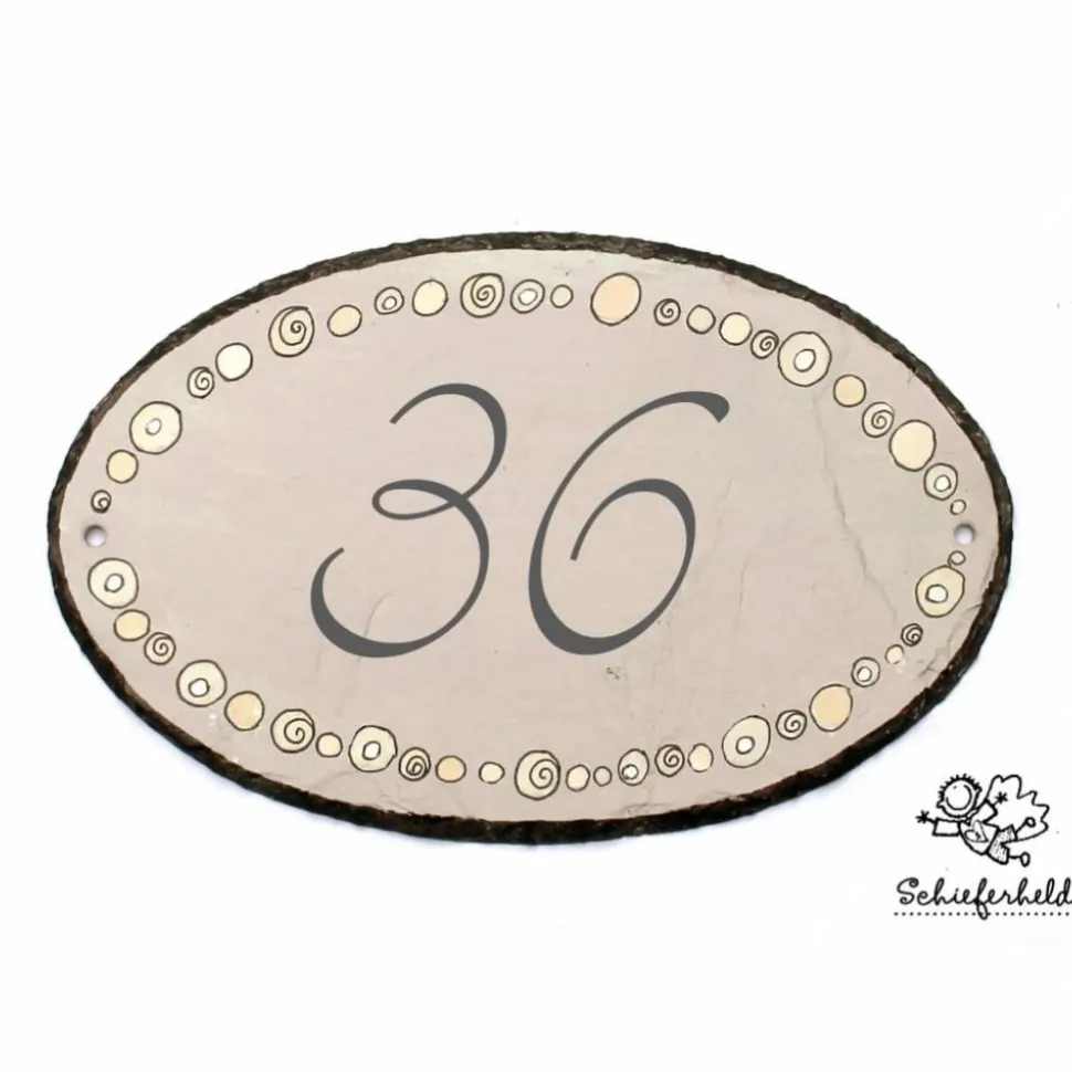 Jedes Schild wird mit speziellem Schieferöl behandelt, poliert und anschließend mit hochwertigen Farben gestaltet. Die Reinigung ist einfach mit einem feuchten Tuch möglich.