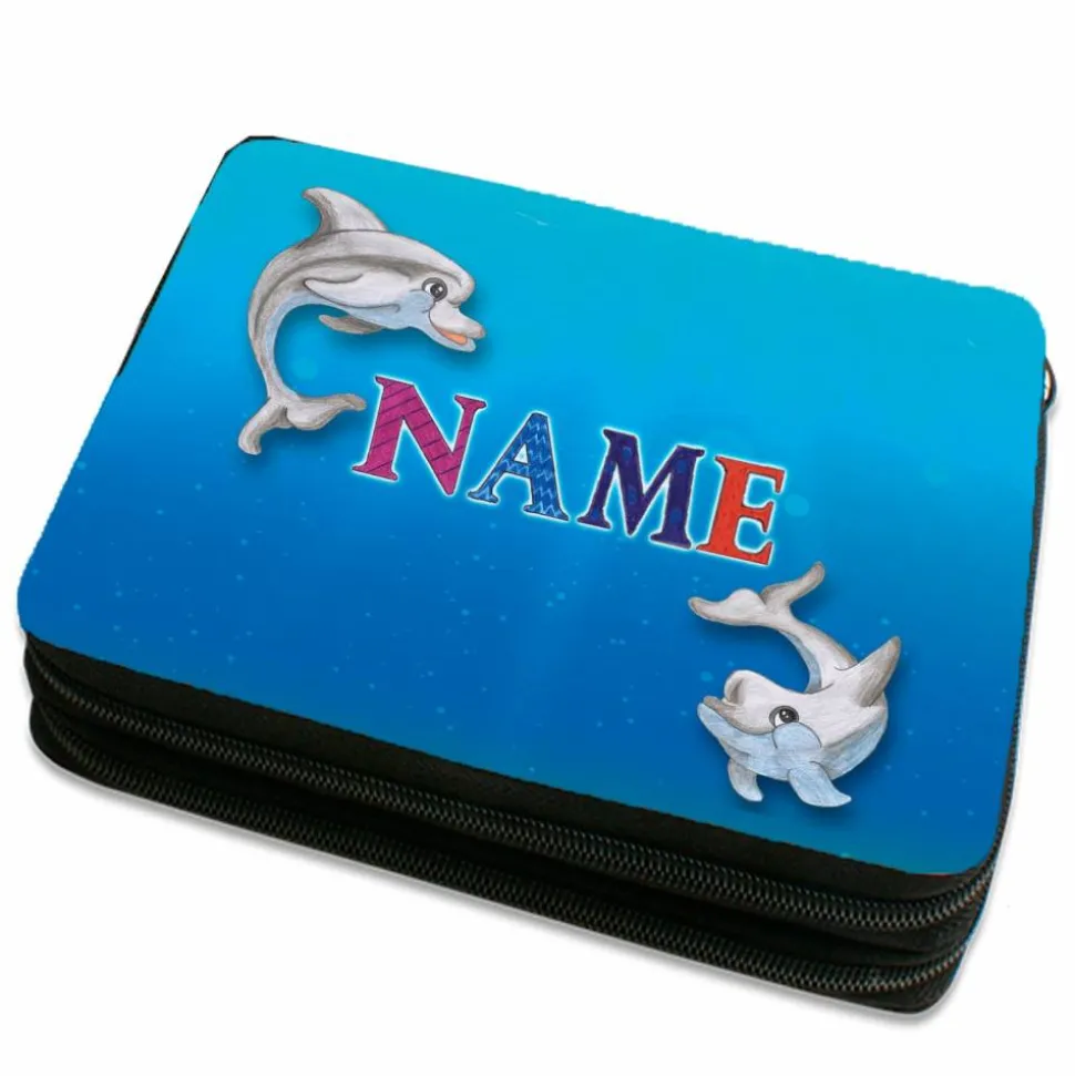 Federmäppchen inkl. Inhalt Motiv Delfin mit Name / personalisierbar / Meer / Ozean / Junge / Mädchen