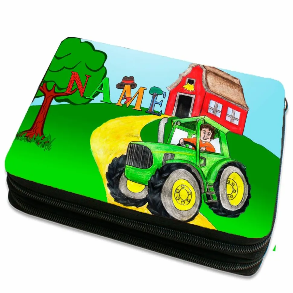 Durch die individuelle Gestaltung, mit Namen und Schriftart, eignet sich diese Doppeldeckerfedermappe hervorragend um Stifte, Lineale, Radiergummi und Spitzer mit einem großen Wiedererkennungswert ordentlich zu verwahren und einer Verwechslung vorzubeugen.