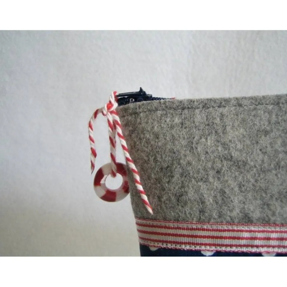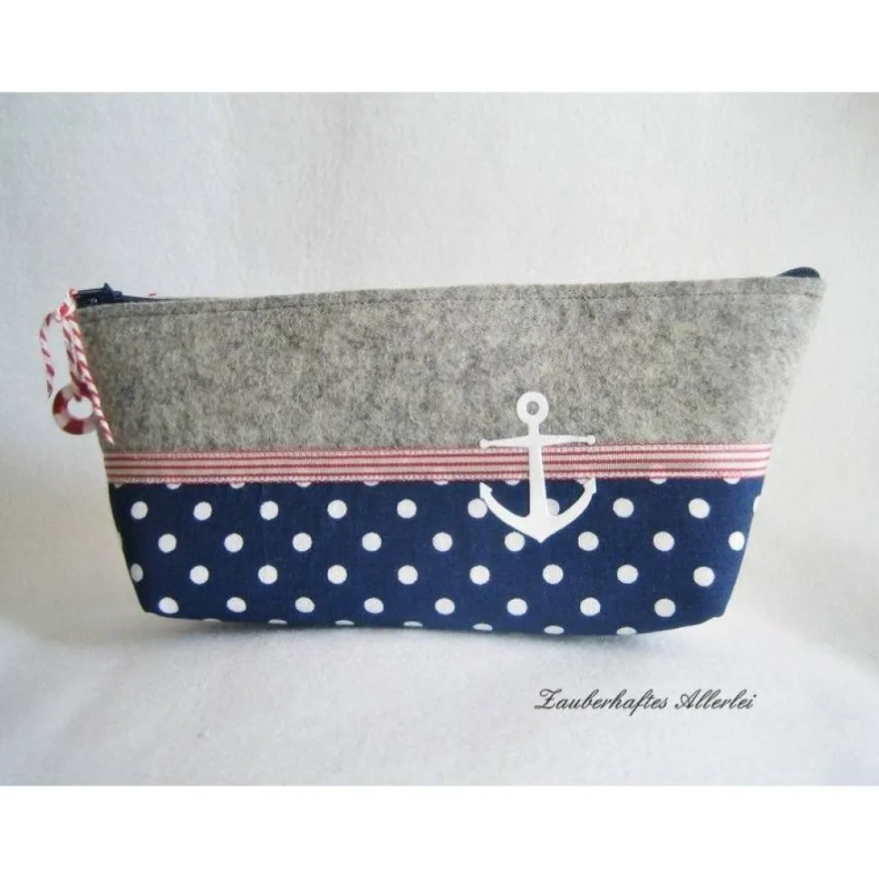 Der Baumwollstoff ist qualitativ hochwertig und das Federmäppchen wird mit einem Reißverschluss geschlossen. Der Anker besteht aus weißer Flockfolie. Der Rettungsring aus massivem Glas (Handarbeit). Auch wunderbar als Kosmetiktasche oder Erste-Hilfe-Tasche vewendbar.