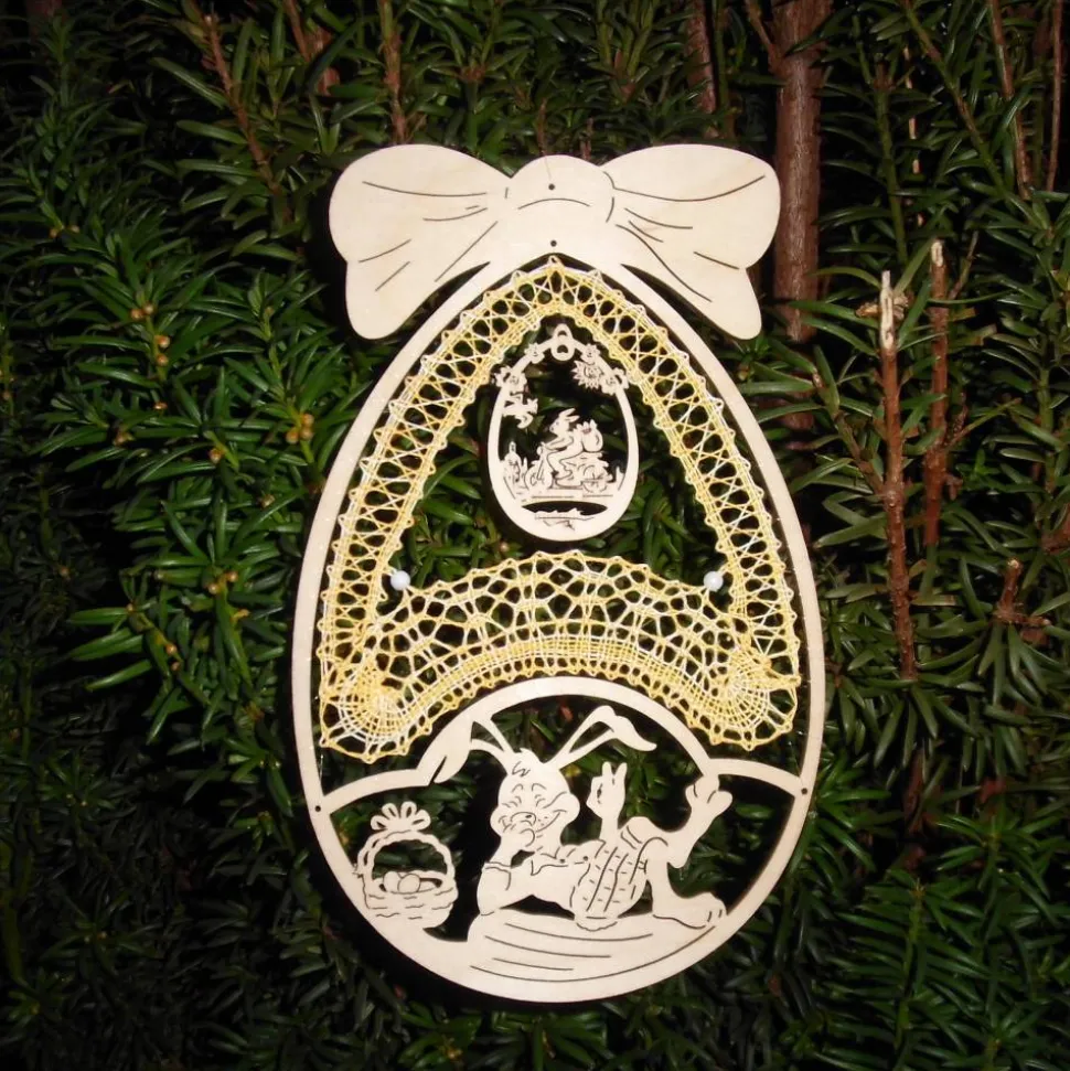 Passend zu einem Rahmen aus Holz in Form eines Ostereis, den ich vor eigener Zeit in einem Geschäft für Klöppelzubehör gekauft habe, entwarf ich ein für den Rahmen geeignetes Klöppelmuster.