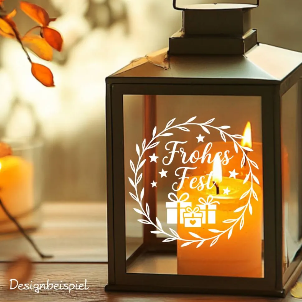 Artikelname: Vinylaufkleber Weihnachtskranz Frohes Fest Geschenke