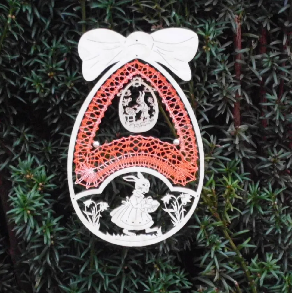 Passend zu einem Rahmen aus Holz in Form eines Ostereis, den ich vor eigener Zeit in einem Geschäft für Klöppelzubehör gekauft habe, entwarf ich ein für den Rahmen geeignetes Klöppelmuster.