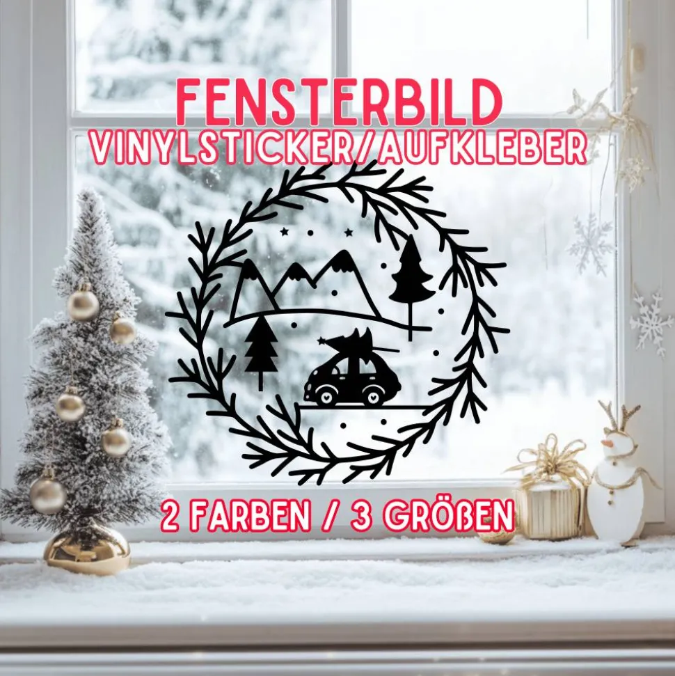 Produktname: Vinylaufkleber Weihnachtskranz Auto Berge