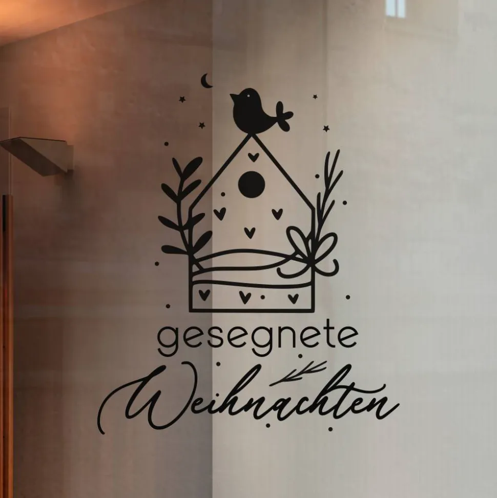 Produktname: Vinylaufkleber gesegnete Weihnachten Vogelhäuschen