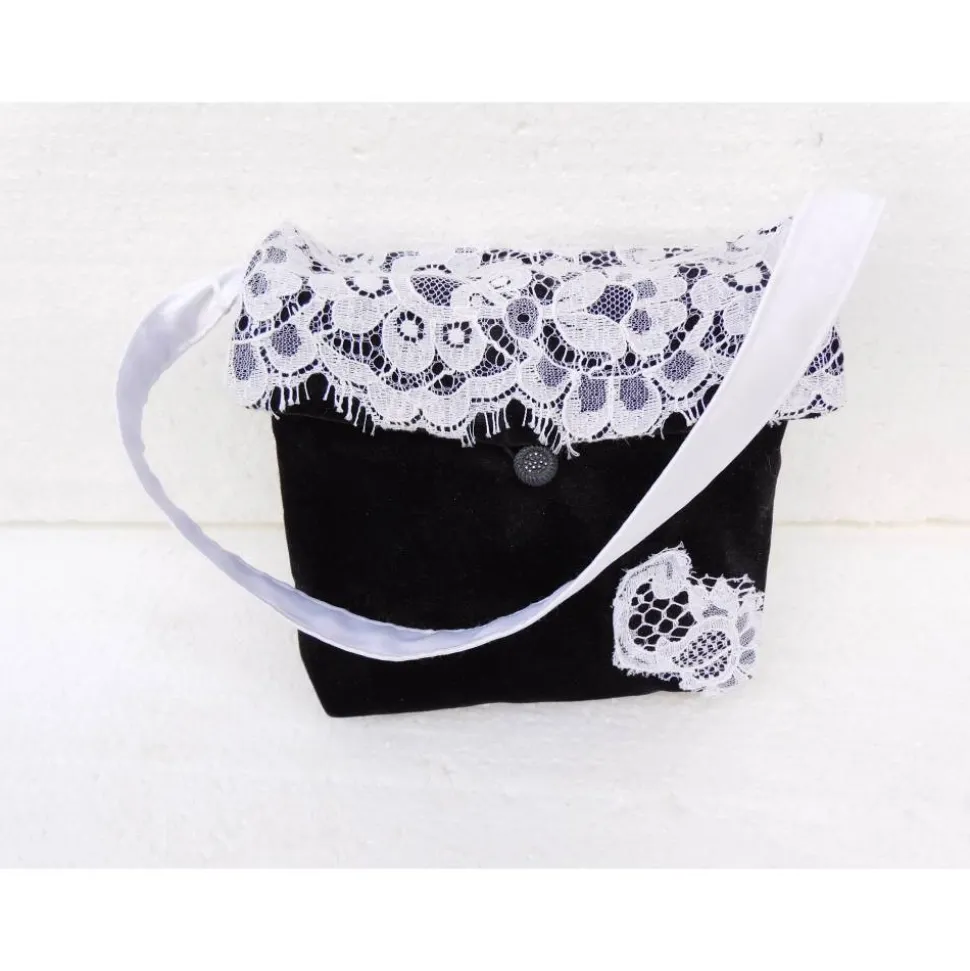 Diese kleine tasche kann man zu festlichen Anlässen,auch zu einer Hochzeit tragen.Ich habe sie aus schwarzem samt hergestellt und mit weißer Spitze verziert.