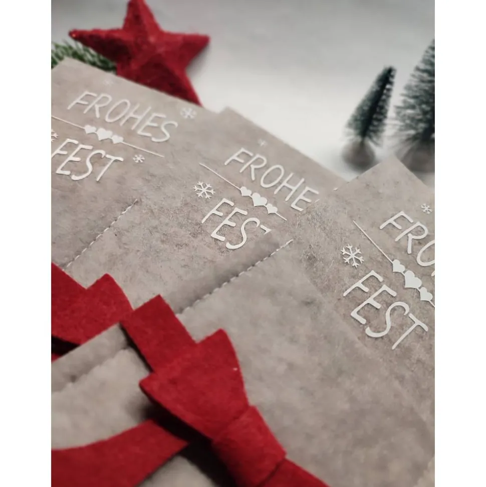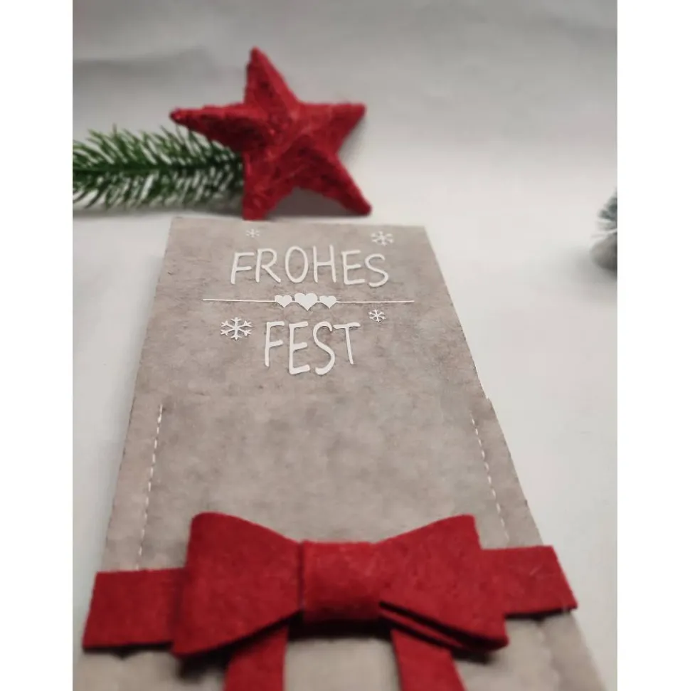 Bringe festliche Stimmung auf deinen Esstisch! Unsere liebevoll handgefertigteBestecktasche aus hochwertigem Filz ist die perfekte Ergänzung für deineWeihnachtsdekoration.