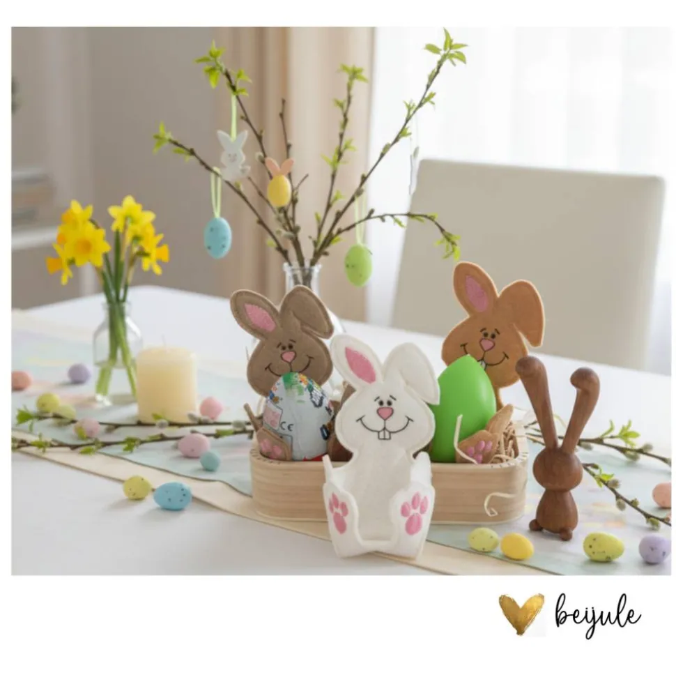 Ob als dekoratives Detail auf dem Ostertisch, als Hingucker im Regal oder als kleine Aufmerksamkeit für Lieblingsmenschen – der kompakte Filzhase setzt überall bezaubernde Akzente.