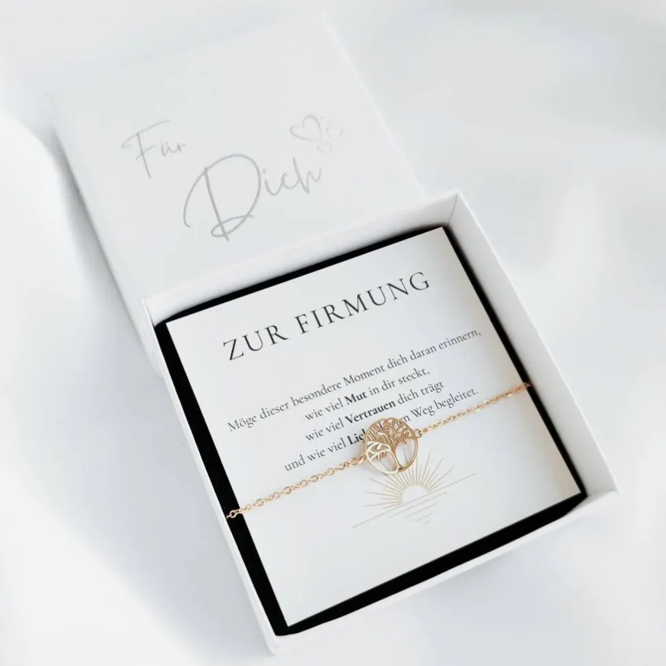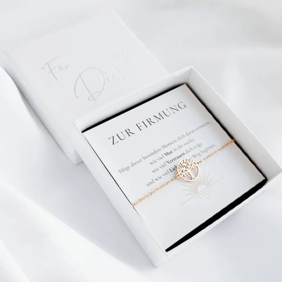 Dieses verschenkfertige Firmungs-Geschenkset verbindet eine besondere Botschaft mit einem Armband, das im Alltag weiter begleitet: Du wählst Symbol und Armbandfarbe passend zur Person – für Mädchen und Jungen, schlicht und bedeutungsvoll.