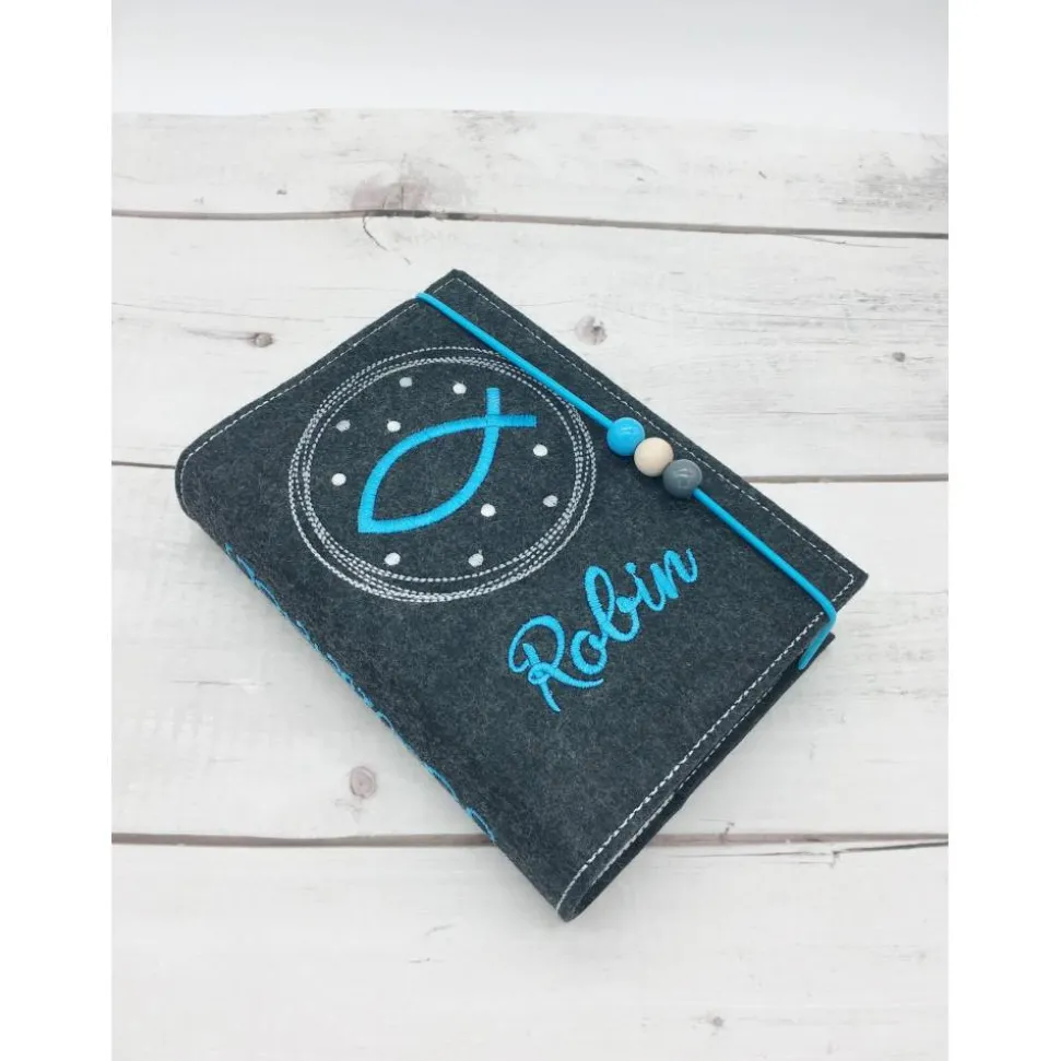 Fisch im Kreis Gotteslobhülle Gebetbuch Hülle Geschenk Kommunion Firmung Geschenkidee Gott Kirche religiös personalisier
