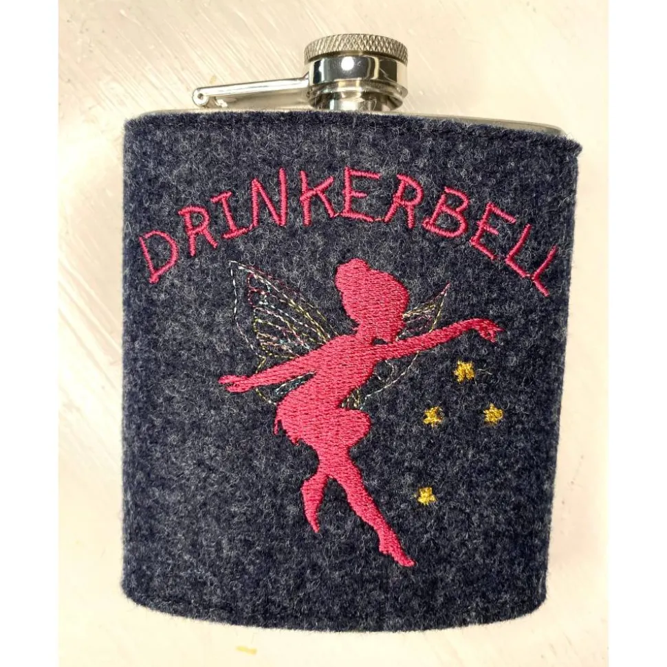 Unsere Flachmänner werden mit einer Filzmanschette umnäht. Das Design der Manschette ist von und liebevoll mi einem witzigen Spruch bestickt.