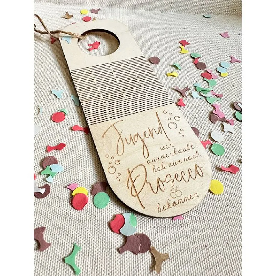 Ob für eine Feier oder als Geschenk – dieser Flaschenanhänger aus Holz verleiht deinem Getränk das gewisse Etwas!