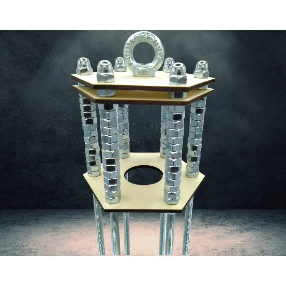 Mit dem DIY-Flaschenkäfig überraschst du Freunde, Familie oder Kollegen mit einer originellen Verpackung, die mehr als ein gewöhnliches Geschenk ist. Der oder die Beschenkte muss sich durch über 120 Muttern schrauben, um die ersehnte Flasche zu befreien – einfach öffnen geht nicht! Der Käfig ist nur durch Geduld und Geschick zu knacken und garantiert Knobelspaß auf jeder Feier.