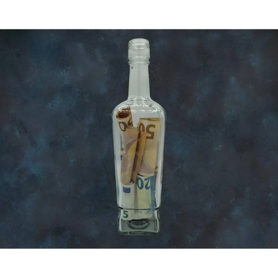 Die Geldscheine kann man durch die obere Öffnung der Flasche ganz bequem einwerfen und sicher für den Beschenkten aufbewahren.
