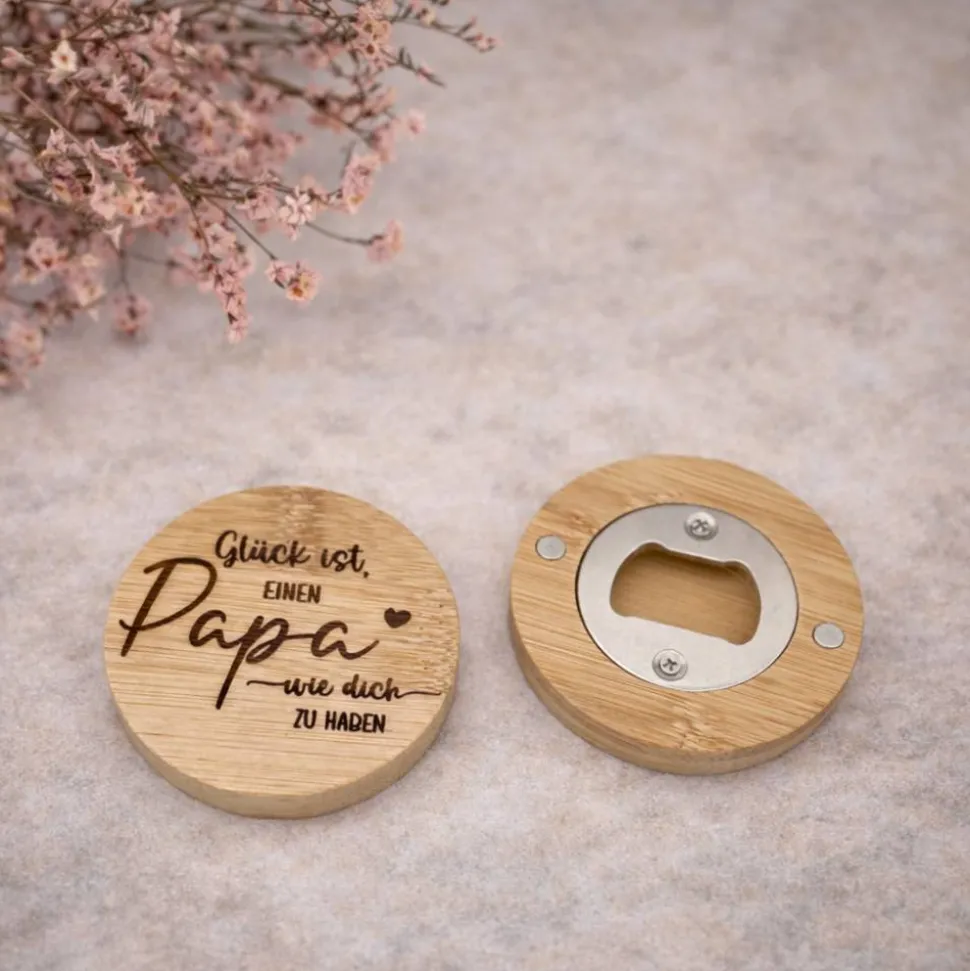 Durch die Kombination aus natürlichem Holz und integriertem Flaschenöffner aus Metall entsteht ein schönes Accessoire, das nicht nur praktisch ist, sondern auch optisch überzeugt. Ob zum Vatertag, Geburtstag, zu Weihnachten oder einfach als kleine Überraschung zwischendurch – dieser Flaschenöffner ist eine schöne Geschenkidee für Papa.